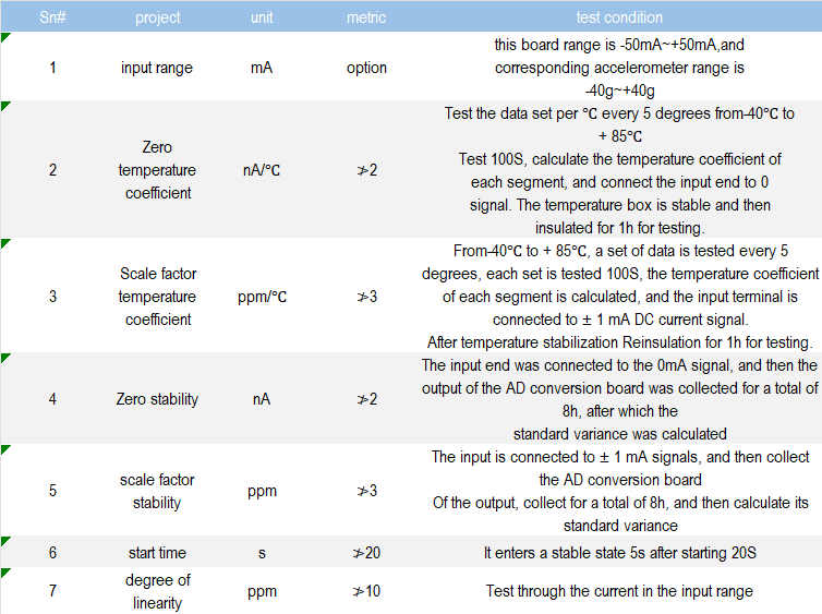 This A/D conversion board transforms the analog current input by 3 quartz flexible accelerometer and 3 PT1000 input temperature signals into digital signals and outputs data in RS422 communication. (This board is 1Hz broadcast sending in default mode)