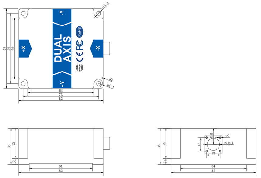Sensor inclinômetro MEMS de alta precisão com precisão de 0,002° e sensor de inclinação de eixo duplo.