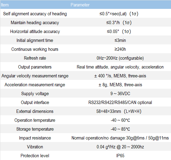 M2300 MEMS inertial navigation device can be used to measure motion parameters such as three-dimensional attitude, angular velocity, and acceleration of moving carriers.The device mainly consists of three orthogonal single axis high-performance MEMS gyroscopes, one three-axis MEMS accelerometer, and related power conversion, acquisition, and calculation circuit boards. The M2300 product adopts high-performance microprocessors and advanced dynamic calculation and EKF algorithms, which can effectively remove the interference of accelerometers under dynamic conditions and the accumulated drift error of gyroscopes. It can provide real-time key information required for ship maneuvering and other surface and underwater vehicles, such as the three-dimensional attitude angle (geographic heading angle, pitch angle, and roll angle), carrier angular velocity (azimuth angular velocity, longitudinal angular velocity, and lateral angular velocity), instantaneous displacement (heave, pitch and roll), and short-term high-resolution positioning data.
