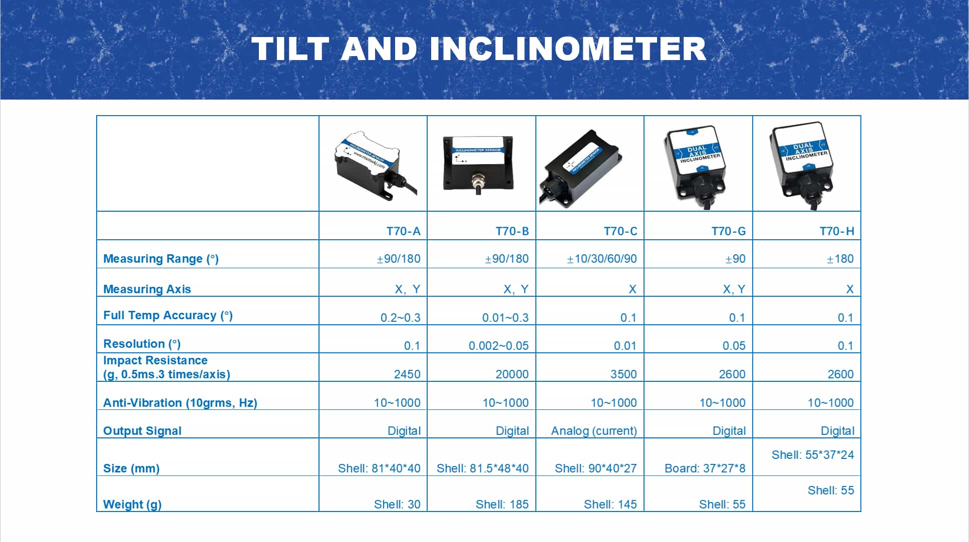 O T70-H é um sensor de inclinação digital de eixo duplo Fabricado pela Micro-Magic Inc., empresa de alta tecnologia, este equipamento integra os protocolos padrão industriais RTU Modbus e hexadecimal 0x68; possui saídas RS232, RS485, RS422 e TTL (opcional). Destina-se principalmente a mercados com limitações de volume, custo e taxa de localização. Graças à unidade de inclinação MEMS (microeletromecânica) integrada, apresenta tamanho reduzido, baixo consumo de energia, alta consistência e estabilidade, forte resistência a interferências eletromagnéticas externas e grande capacidade de suportar impactos e vibrações. O objetivo é fabricar equipamentos de produção nacional e superar barreiras tecnológicas por meio de pesquisa e desenvolvimento independentes.