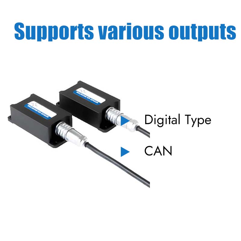 T700-A é uma saída digital. sensor de inclinação de eixo duplo Com um conversor A/D de 16 bits de alta precisão integrado, o produto mede o ângulo de inclinação e rotação da saída do sensor em relação ao plano horizontal através de um algoritmo de filtro de n-ésima ordem. As interfaces de saída RS232, RS485, RS422, TTL, Modbus, PWM e CANbus são opcionais. O produto corrige a deriva térmica do sensor de acordo com a variação de temperatura monitorada pelo sensor de temperatura integrado, garantindo a repetibilidade do produto em ambientes de baixa e alta temperatura. A frequência de saída é de 100 Hz.